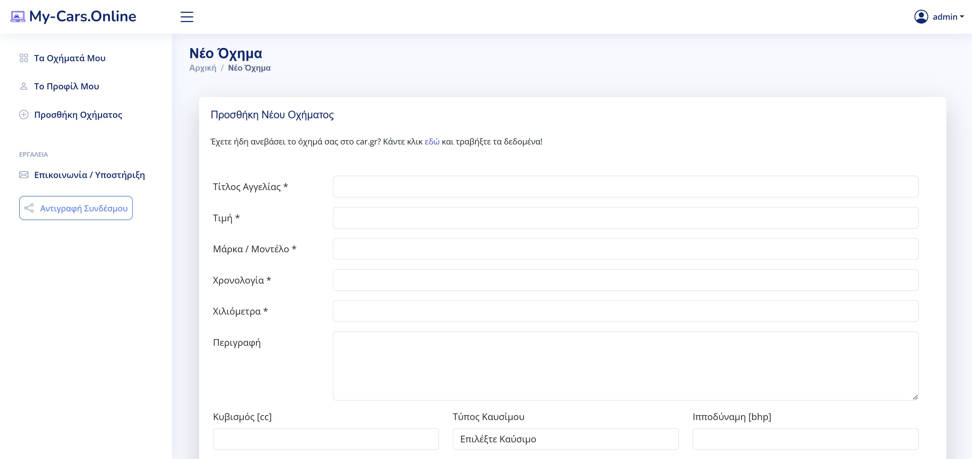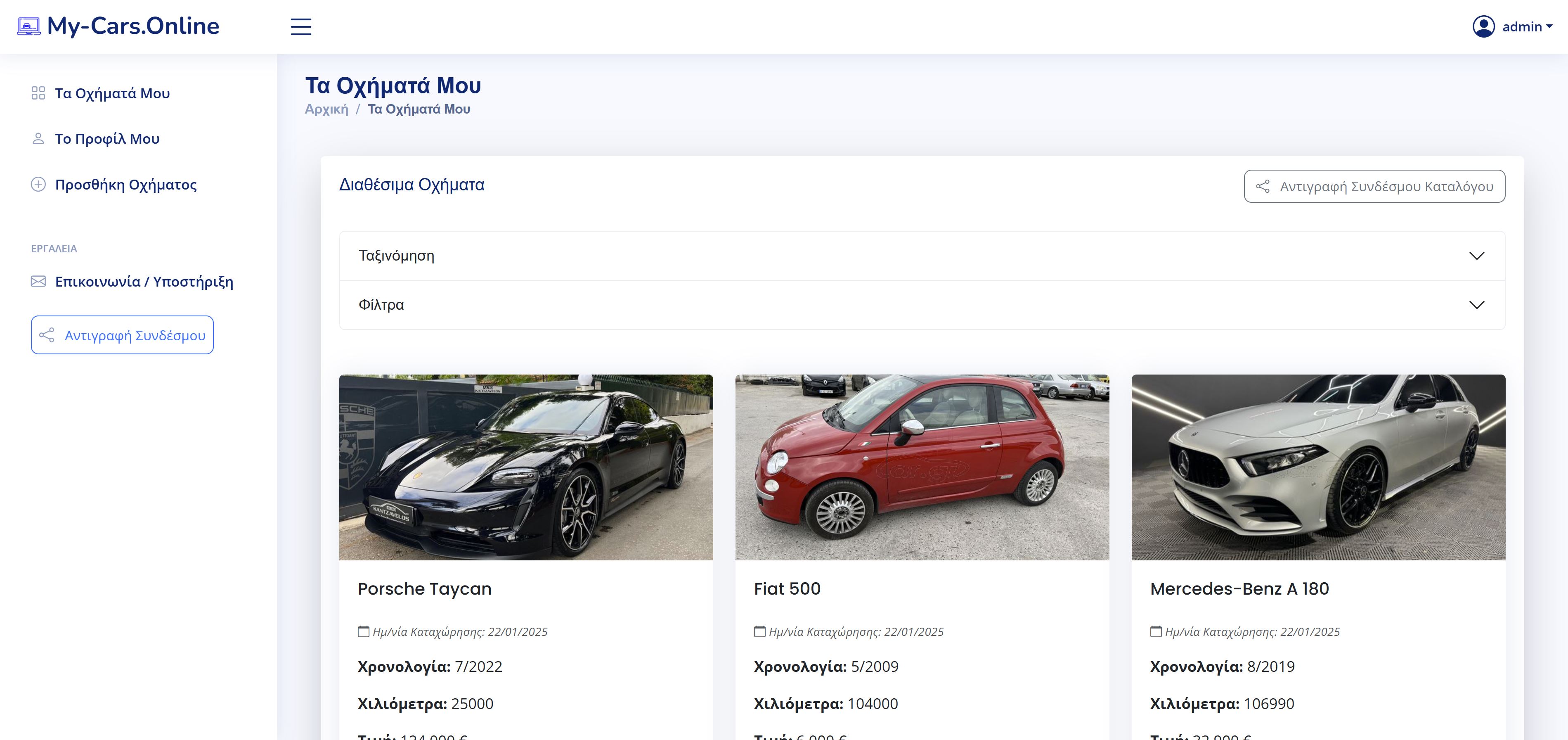 Προσθέστε τις αγγελίες των αυτοκινήτων σας με φωτογραφίες και περιγραφές. Με ανταγωνιστικό κόστος, μόνο 50€/μήνα, προσφέρουμε μια ολοκληρωμένη λύση για την online παρουσία σας. Ανεβάστε απεριόριστα αυτοκίνητα και φωτογραφίες, ενώ η πλατφόρμα μας κάνει την όλη διαδικασία παρουσίασης προς τους πελάτες σας απλή και αποτελεσματική.